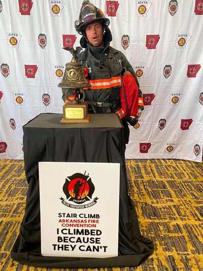 This Saturday, Lake Hamilton Firefighter Sam Wills, along with dozens of other firefighters from around the State, participated in the First Annual Arkansas Fallen Firefighters' Memorial Stair Climb. The event serves as a tribute to Arkansas firefighters who lost their lives in the performance of, or as the result of, their fire service. FF Wills performed the Climb in honor and memory of Lake Hamilton Fire Chief Matt Simpson, who passed away from cancer in 2014.